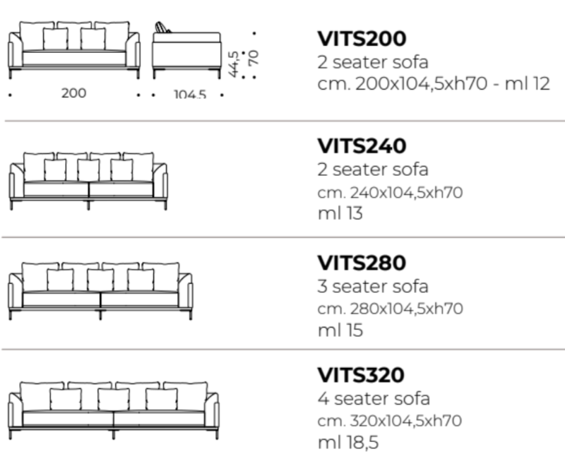 Vittoria Premium Sofa | Dimensions: W 280 cm